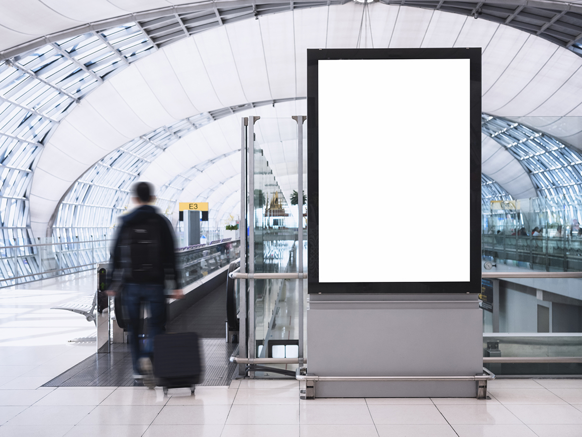 Mock up Banner Media light box with people Public Building