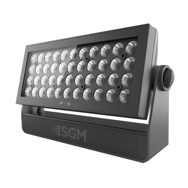 The SGM P‑5 is a high‑performance IP65 RGBW LED wash light known for its exceptionally smooth, bright output and reliable operation in both indoor and outdoor environments. With interchangeable lenses and engineered optics, it delivers even coverage, rich colours, and strong output for a wide range of lighting tasks.