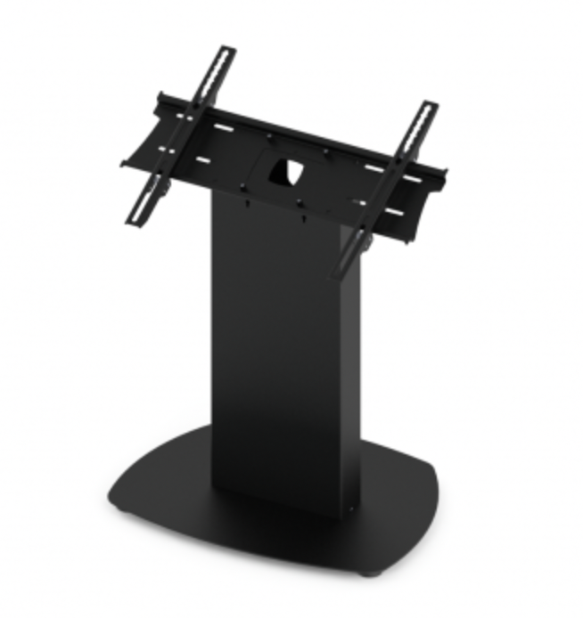 The tableau provides a sleek, fixed-angle mounting solution for screens. It features two compartments for housing small PCs, electronics, and cabling, while the base allows cables to be routed underneath for a safe, tidy installation. Ideal for interactive touchscreen setups, the stand combines functionality with a clean, professional finish.